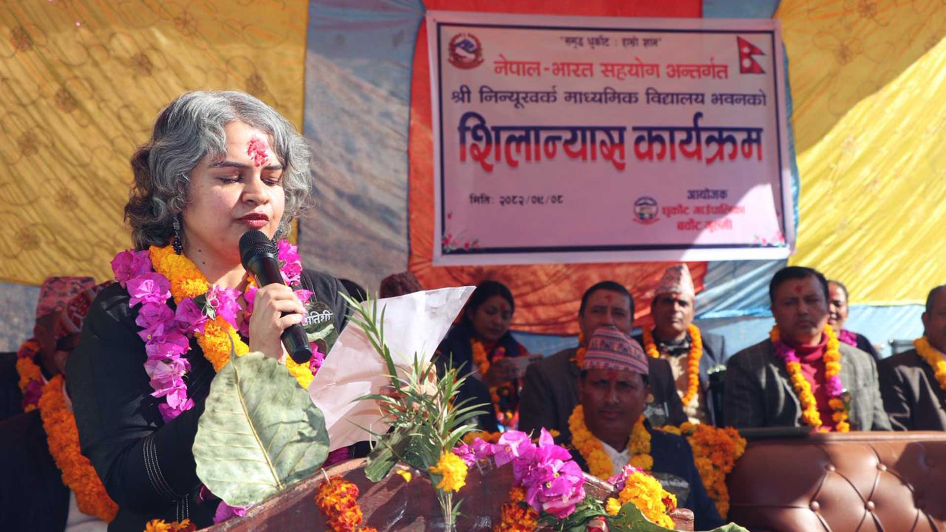 काठमाडौं — नेपालको लुम्बिनी प्रदेशअन्तर्गत गुल्मी जिल्लाको धुर्कोट गाउँपालिका–३ मा रहेको श्री निन्यूखर्क माध्यमिक विद्यालयका लागि निर्माण गरिने नयाँ भवनको शिलान्यास सम्पन्न भएको छ। शिलान्यास कार्यक्रम काठमाडौंस्थित भारतीय राजदूतावासकी काउन्सलर गीतांजलि ब्रैंडन र धुर्कोट गाउँपालिकाका अध्यक्ष भुपाल पोखरेलले संयुक्त रूपमा गर्नुभएको हो।